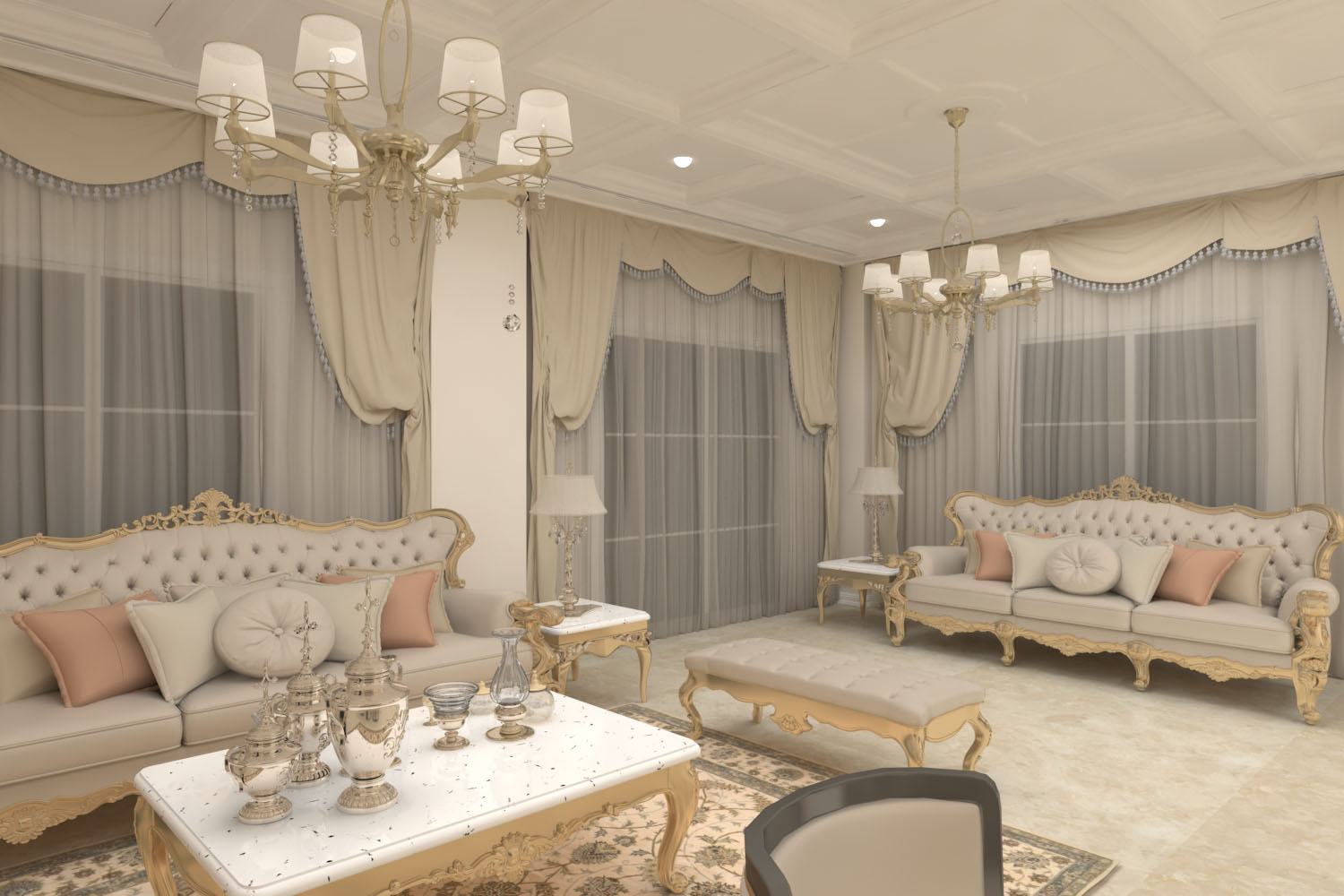 250 meter- The duplex villa was renovated in classic style. Corridors were accentuated as gallery spaces and mimicked with marble tiling. Interiors are lit up with various claddings and LED lighting enhancing each space uniquely.